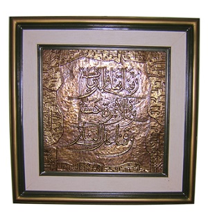 Kerajinan ukir kaligrafi berbahan dasar tembaga ini sangat cocok untuk hiasan rumah anda. Berikut ini adalah beberapa contoh kaligrafi ukir tembaga dan kuningan. Anda pun juga bisa menentukan motif dan ukuran sesuai dengan keinginan. Apa yang kami tampilkan berikut ini hanya sekedar contoh.